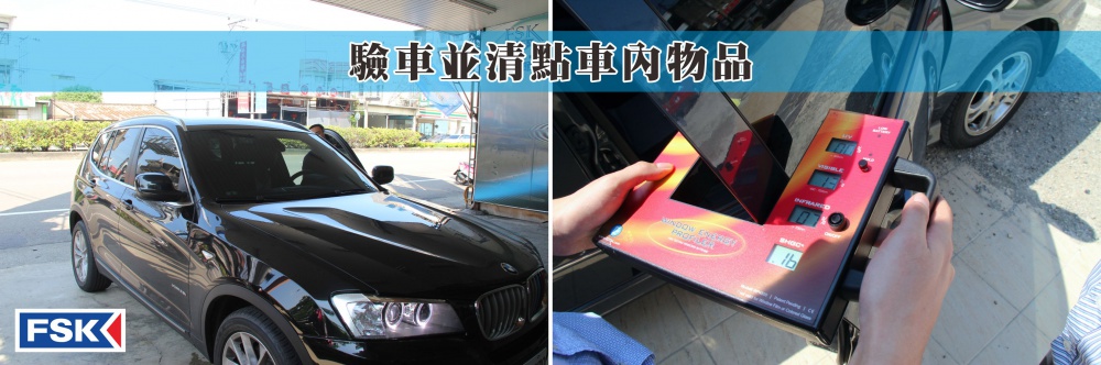 1. 驗 車: 檢查車窗玻璃、車漆、車窗及後擋除霧線狀況。