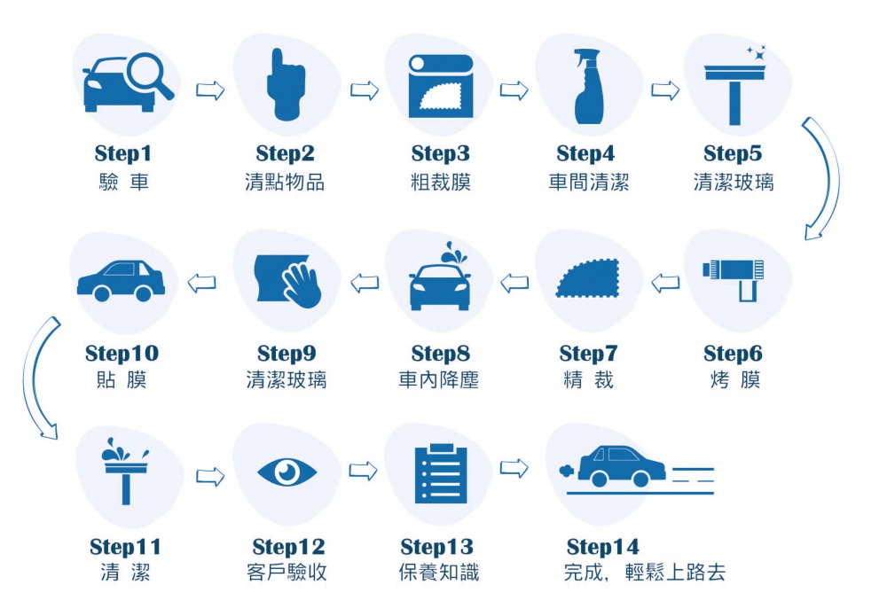 10. 貼 膜: 依照操作規範將膜安裝到車輛上