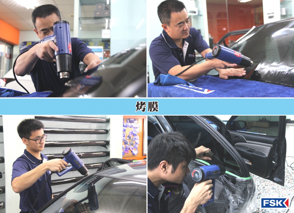 6. 烤 膜: 用烤槍對膜片烘烤,使之收縮並定出符合玻璃弧度的形狀