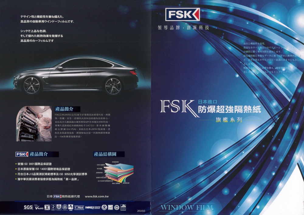 FSK提供您各式汽車專業及居家建築隔熱紙、防爆膜、車體防護膜及汽車精品保養產品、生活精品..等多項產品,為客戶提供完整的商品資訊