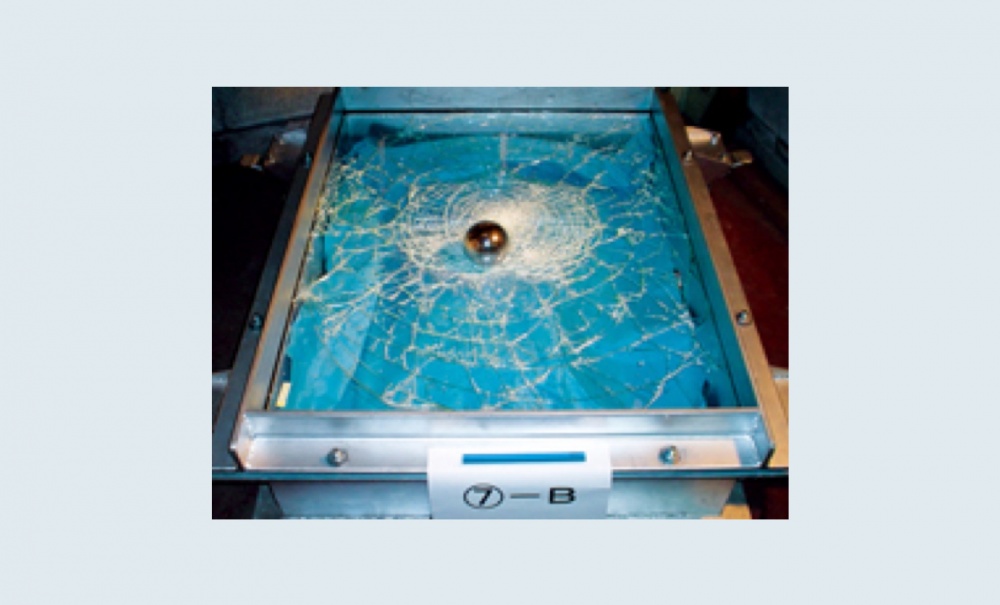 符合歐洲 EN356 防止犯罪規格之國際測試標準。將試驗體貼上 FSK 1561UH,從規定的高度掉下直徑 100 mm、重量4.11 Kg的鋼球,反覆3回,無貫穿即合格。